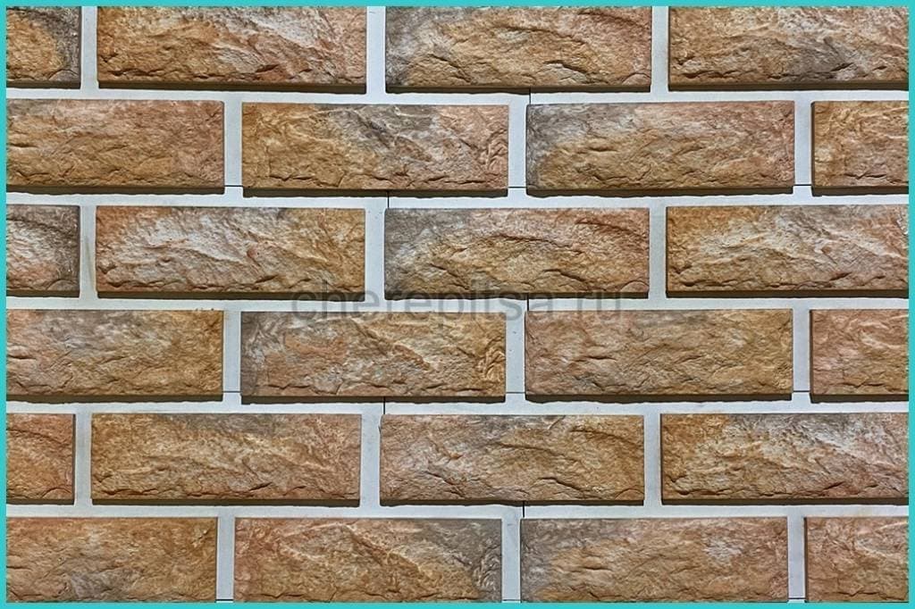 Оригинальная фактура плитки Каньон под сколотый кирпич напоминает материал ручной формовки. Сколотые фаски кирпича - словно выдолблены из цельной каменной глыбы.