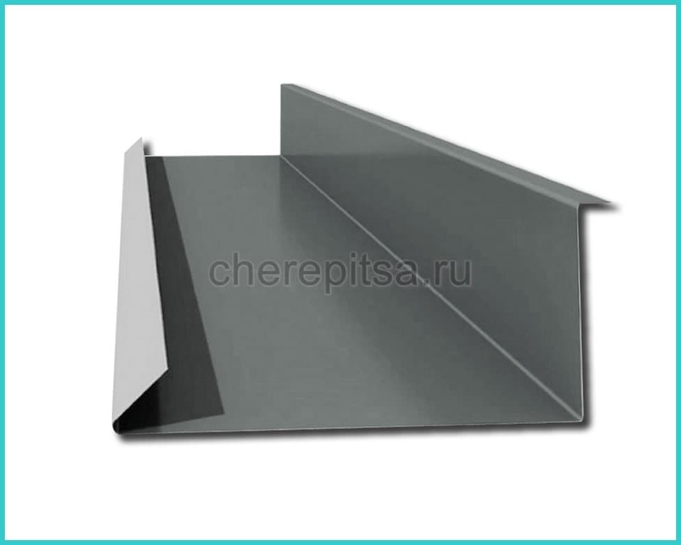 Этот элемент отделки кровли устанавливается в штробу на стене, для избежания затека влаги в подкровельное пространство.