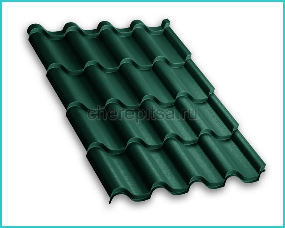широкий выбор типоразмеров металлочерепицы, высота ступеньки 25мм, 30мм, 35мм; длина волны 350мм и 400мм;