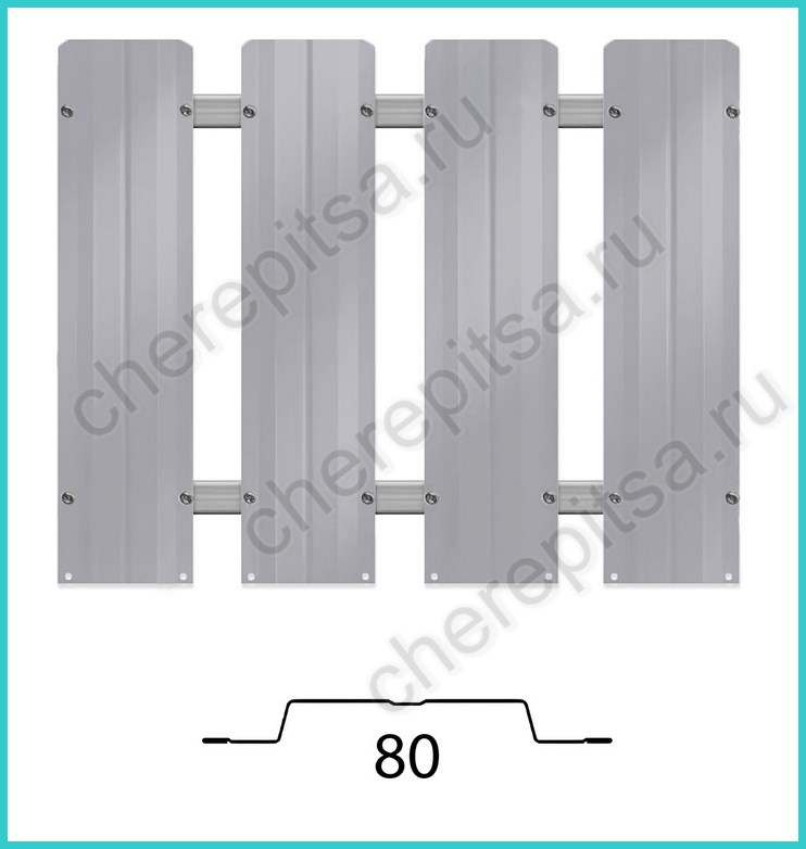 Ширина штакетин — 80мм, длина — 1500, 1750 либо 2000мм, линия верха скругленная либо прямая.